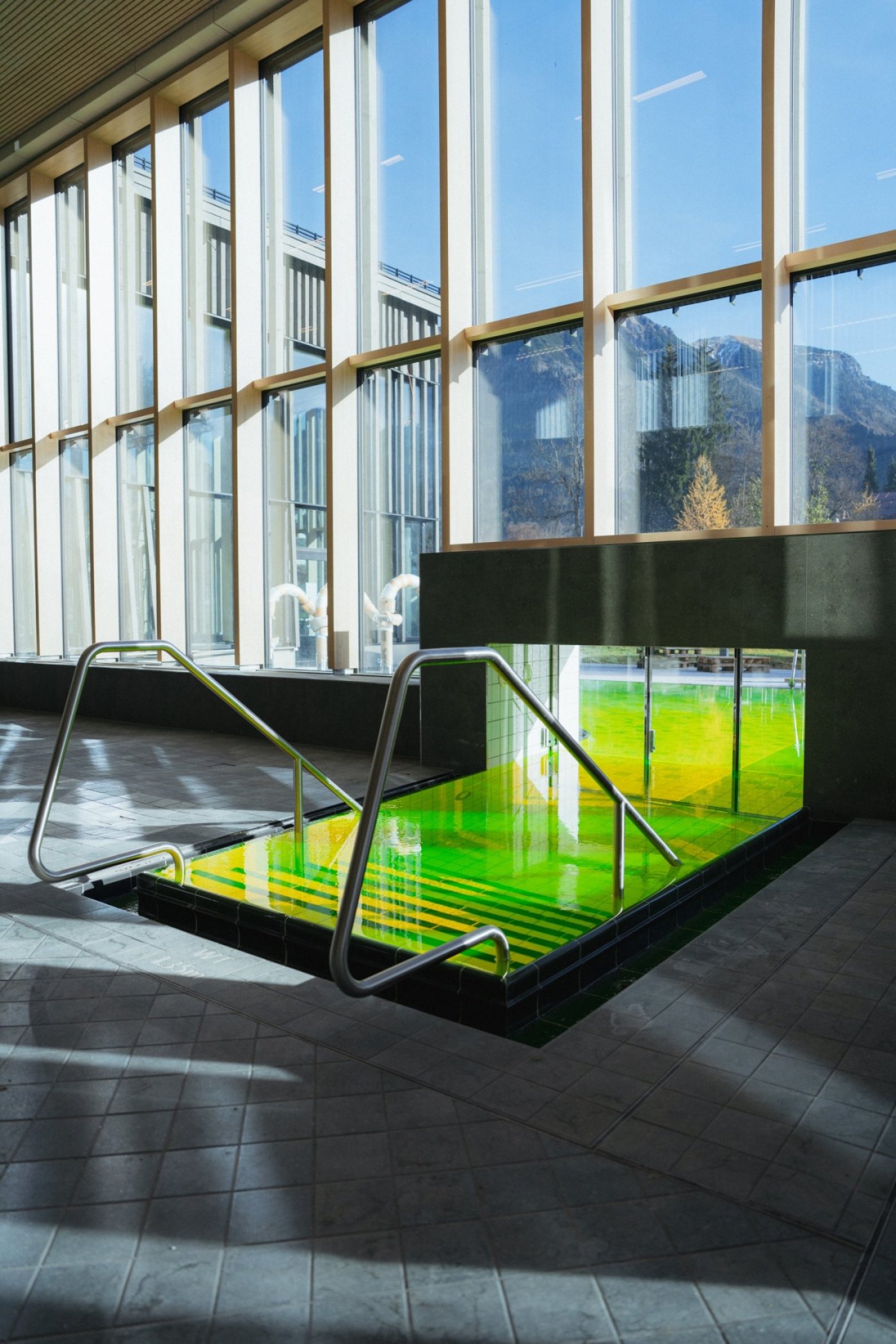 Warum färbt das Gesundheitsamt ein Thermenbecken blau/grün ein?